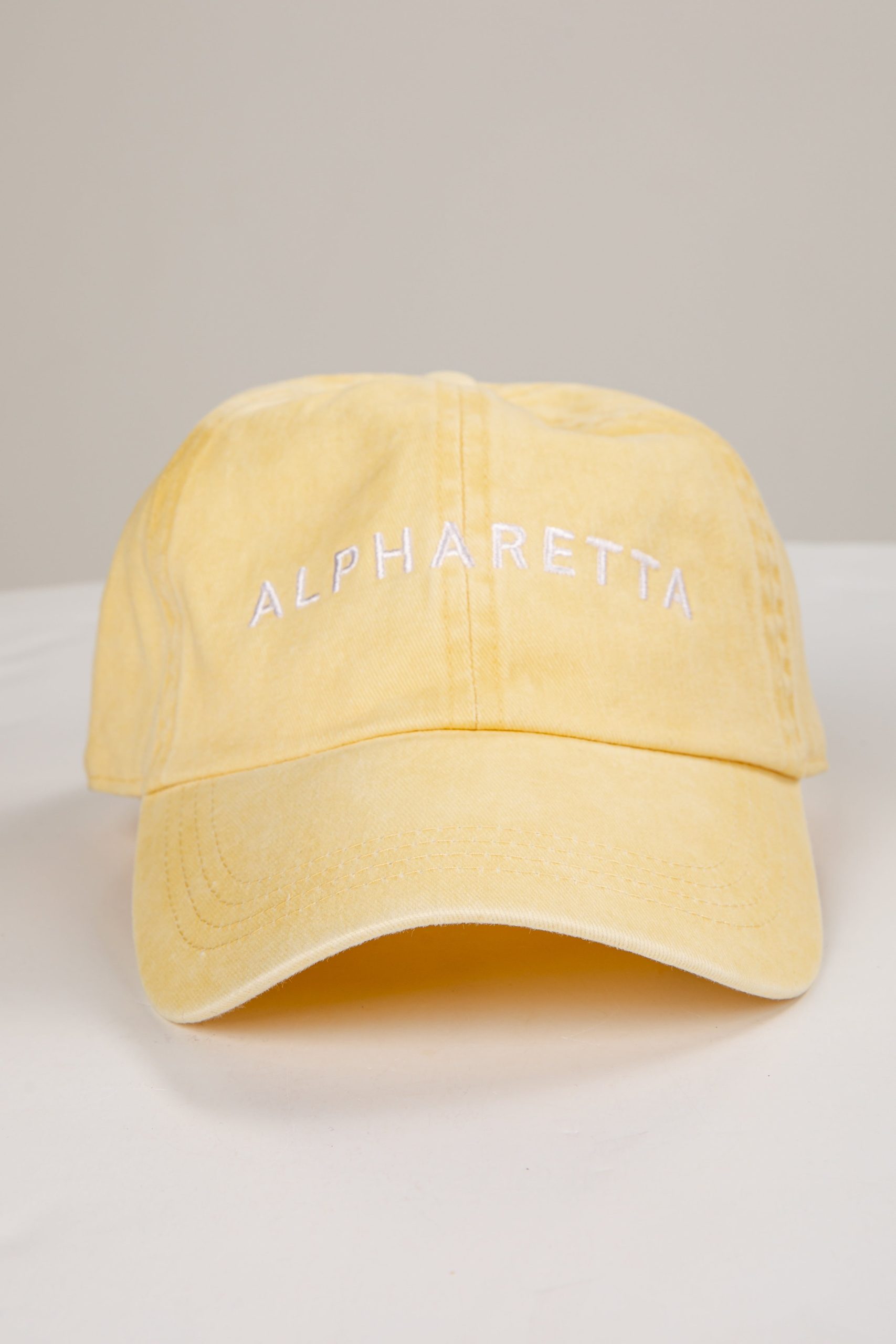 Calling all Alpharetta residents, the Alpharetta Embroidered Hat was made just for you! This cute hat is made of a soft cotton construction. It has a rounded top and a slightly rounded brim with “Alpharetta” embroidered on the front! Available in 4 colors. Adjustable Strap Embroidered 100% Cotton Spot Clean with Damp Cloth or Sponge One Size Fits Most