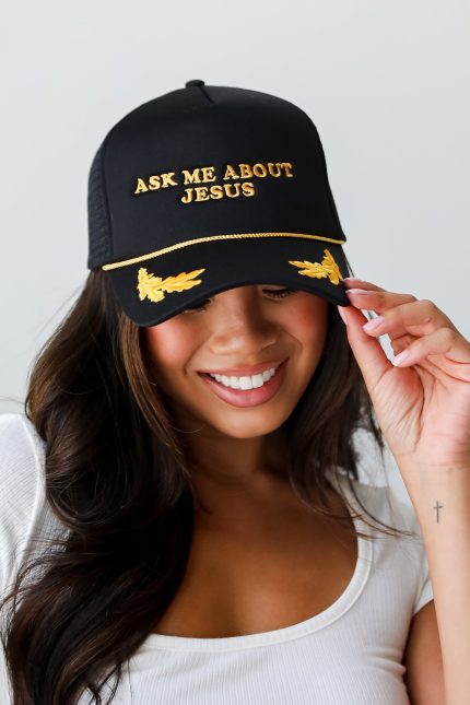 We love the message on the Light Blue Ask Me About Jesus Trucker Hat! This cute hat is made of a soft cotton construction with a mesh back. It has a rounded top and a slightly rounded brim with “Ask Me About Jesus” on the front! Adjustable Strap Spot Clean with Damp Cloth or Sponge One Size Fits Most